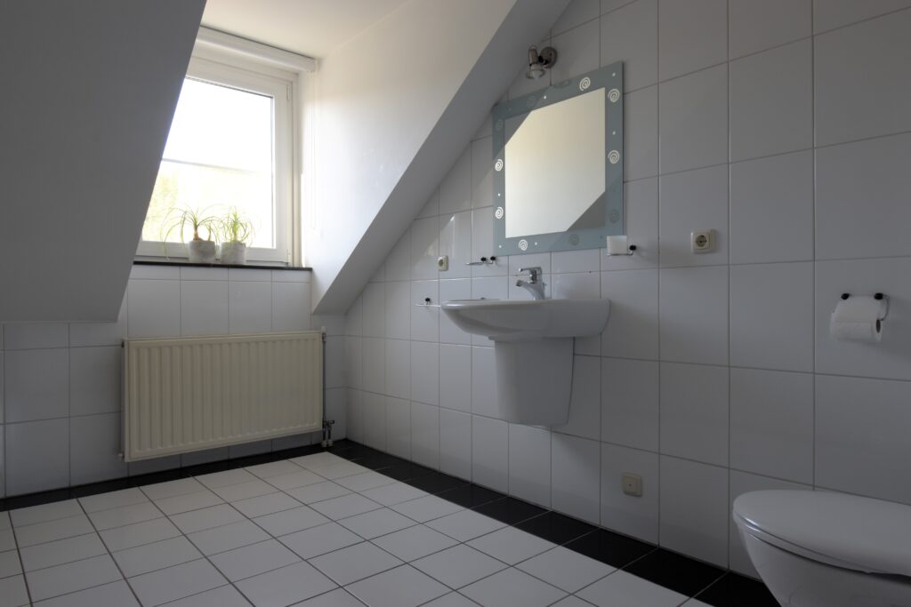 De badkamer, 3.60 x 3.31 is v.v. een ligbad/douche combi, wastafel en zwevend toilet