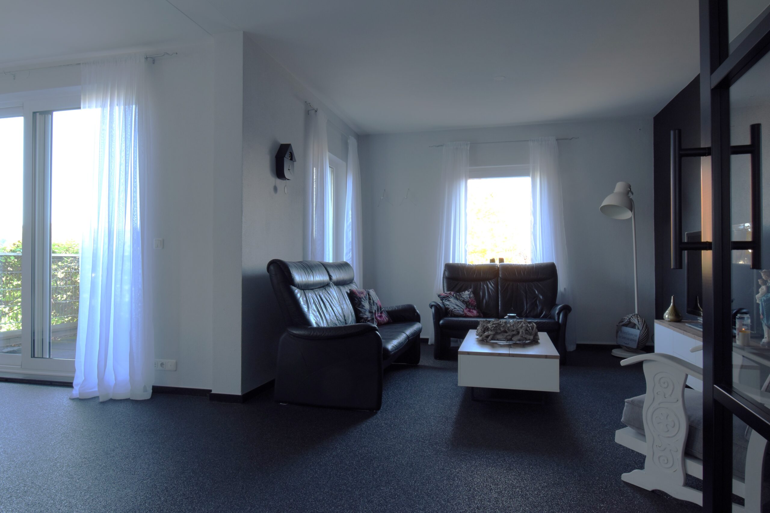De L-vormige woonkamer, 5.67 x 3.52/4.15 x 3.77 (35m2) is v.v. een gashaard en via de schuifpui komt men op het balkon, 3.59 x 2.63 (N/O)