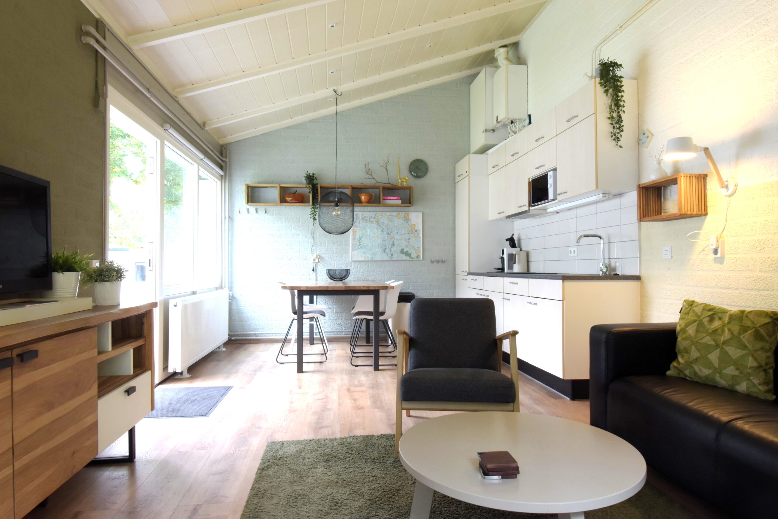 De keuken is v.v. de volgende apparatuur: inductie kookplaat, afzuigkap, koelkast.