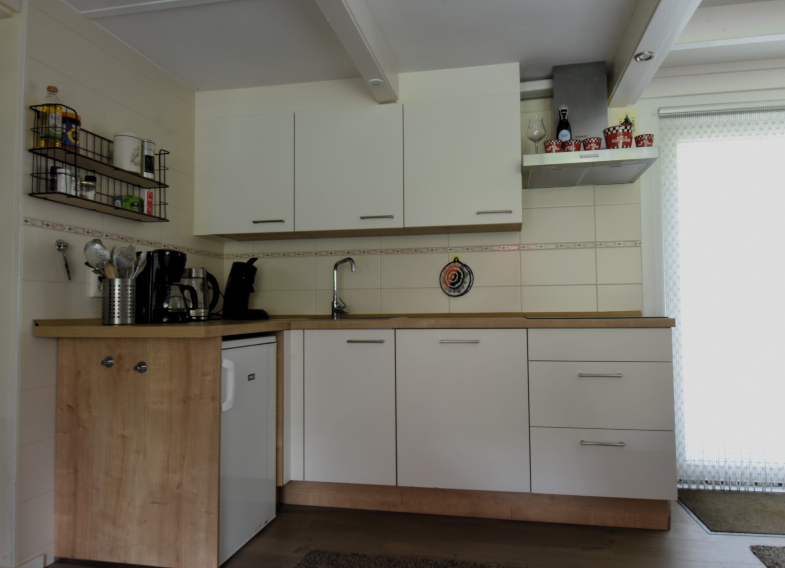 In de keuken is de volgende apparatuur aanwezig: koelkast, inductie kookplaat, afzuigkap, vaatwasser en magnetron.