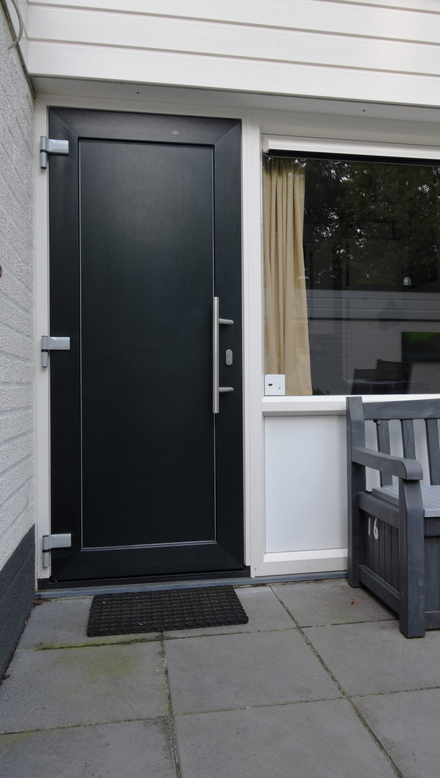 Aan de voorkant van het pand staat een Biohort fietsenstalling. (Verzinkd staal)