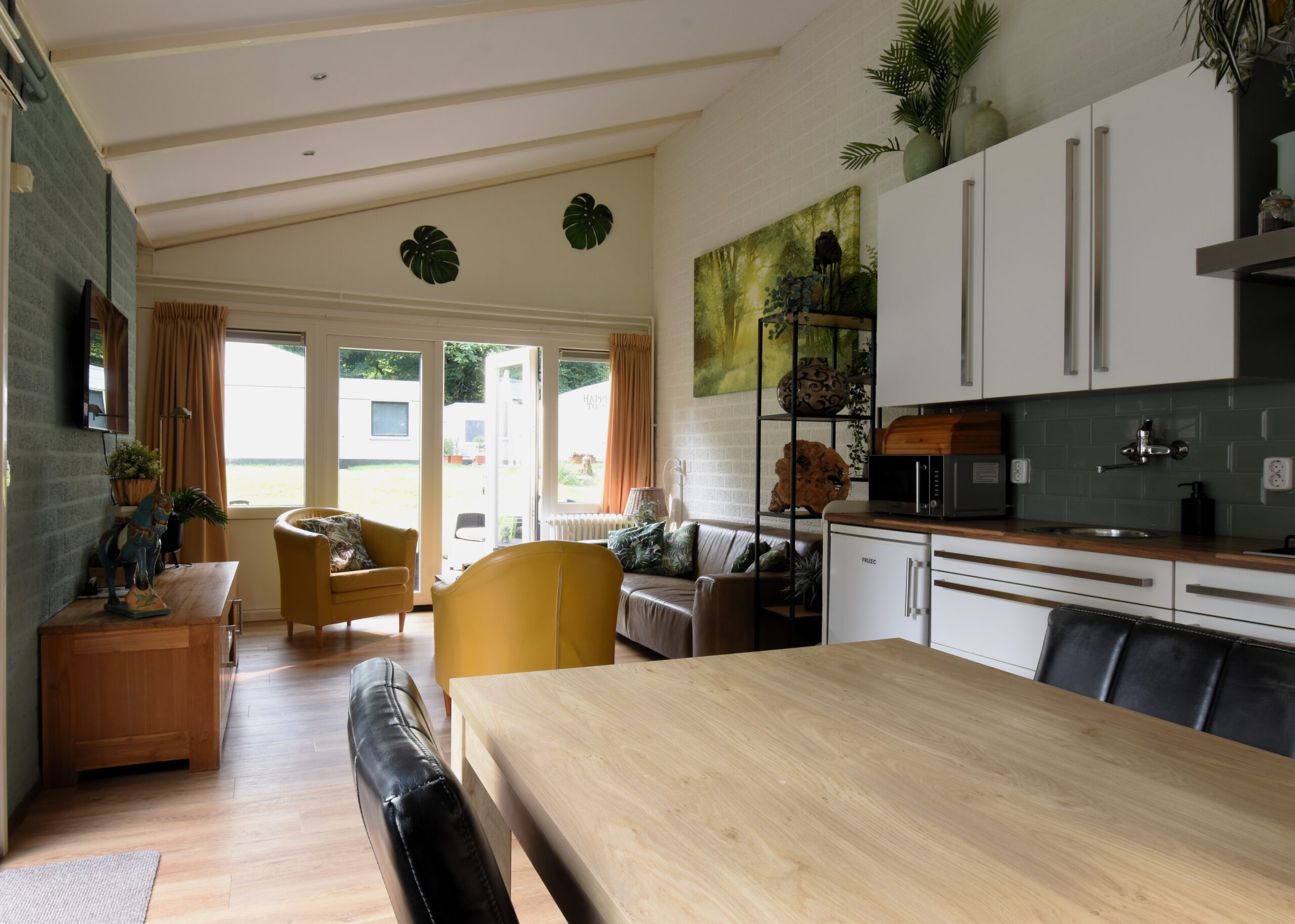 De luxe keuken is v.v. de volgende apparatuur: Gastoestel, afzuigkap, combimagnetron, koelkast, waterkoker en Senseo koffie apparaat.