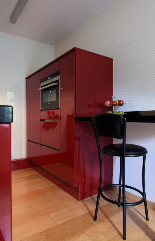 Daar de keuken half open is, is deze niet zichtbaar vanuit de woonkamer.