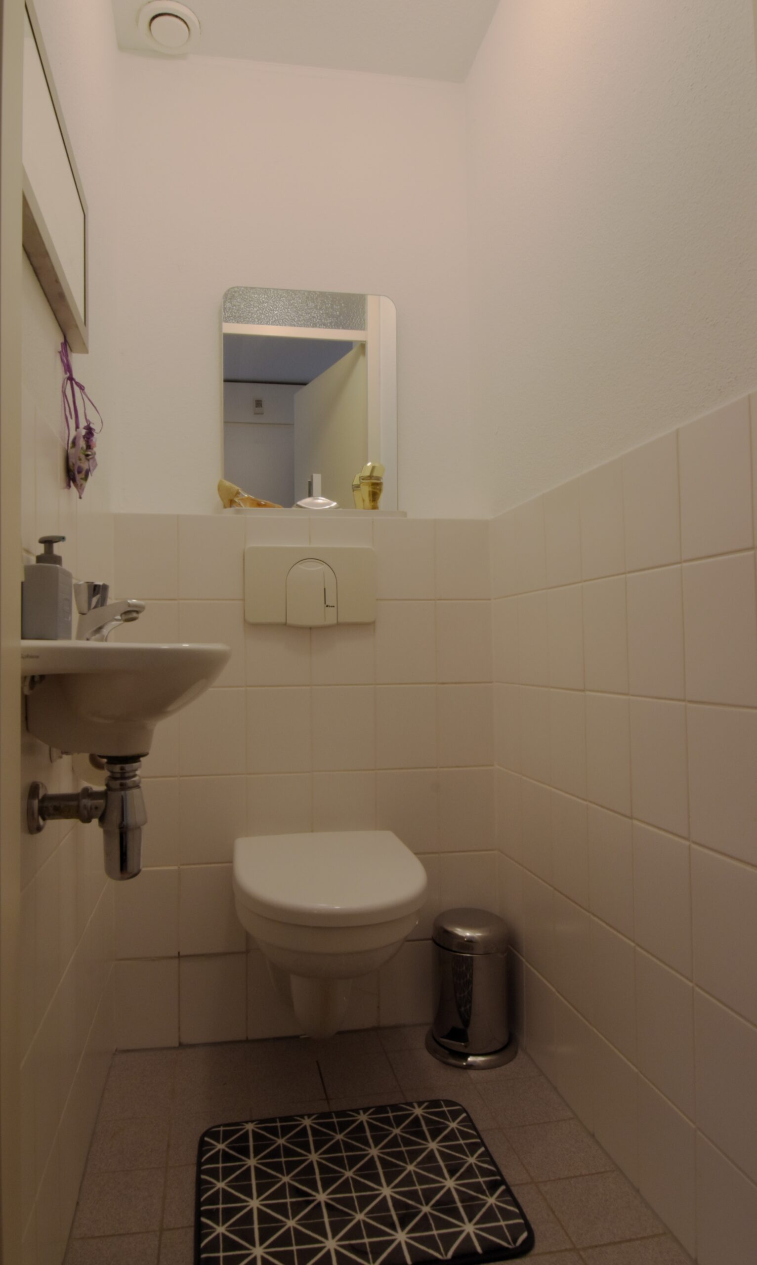 Er is een apart toilet (zwevend toilet met fonteintje)