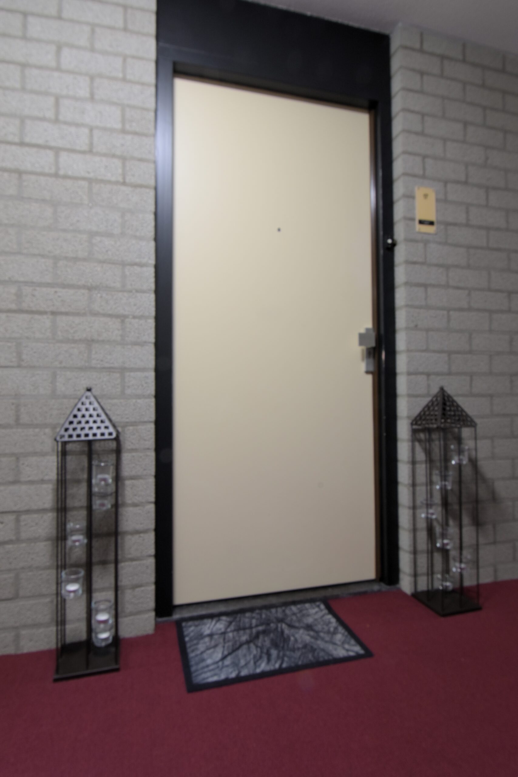 Entree, bellentableau met video, gezamenlijke ingang met lift.