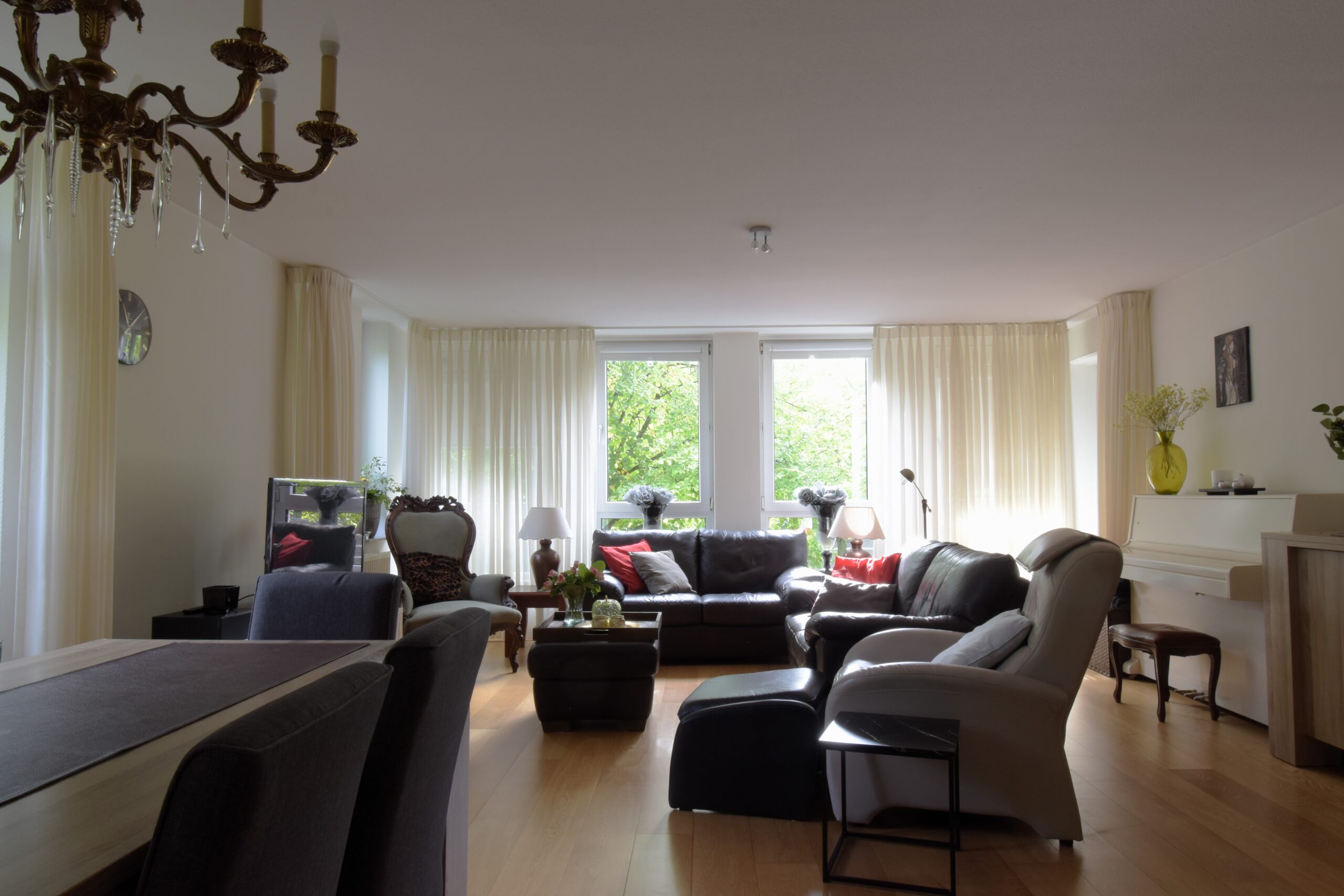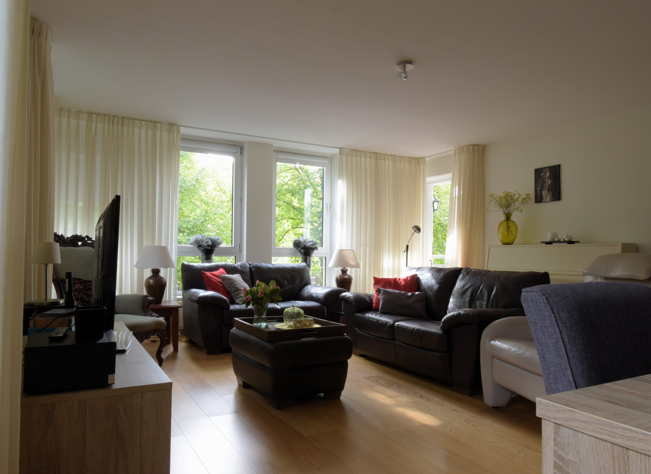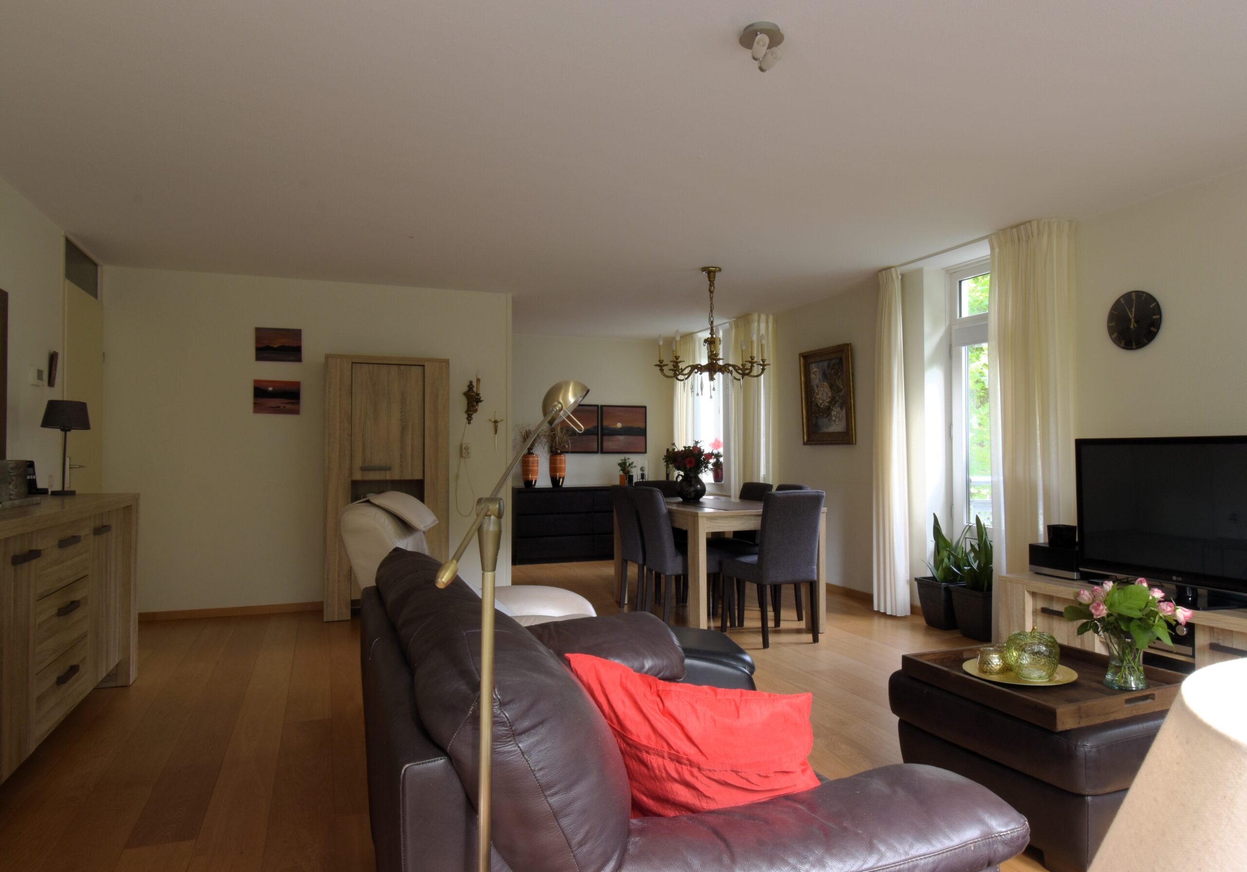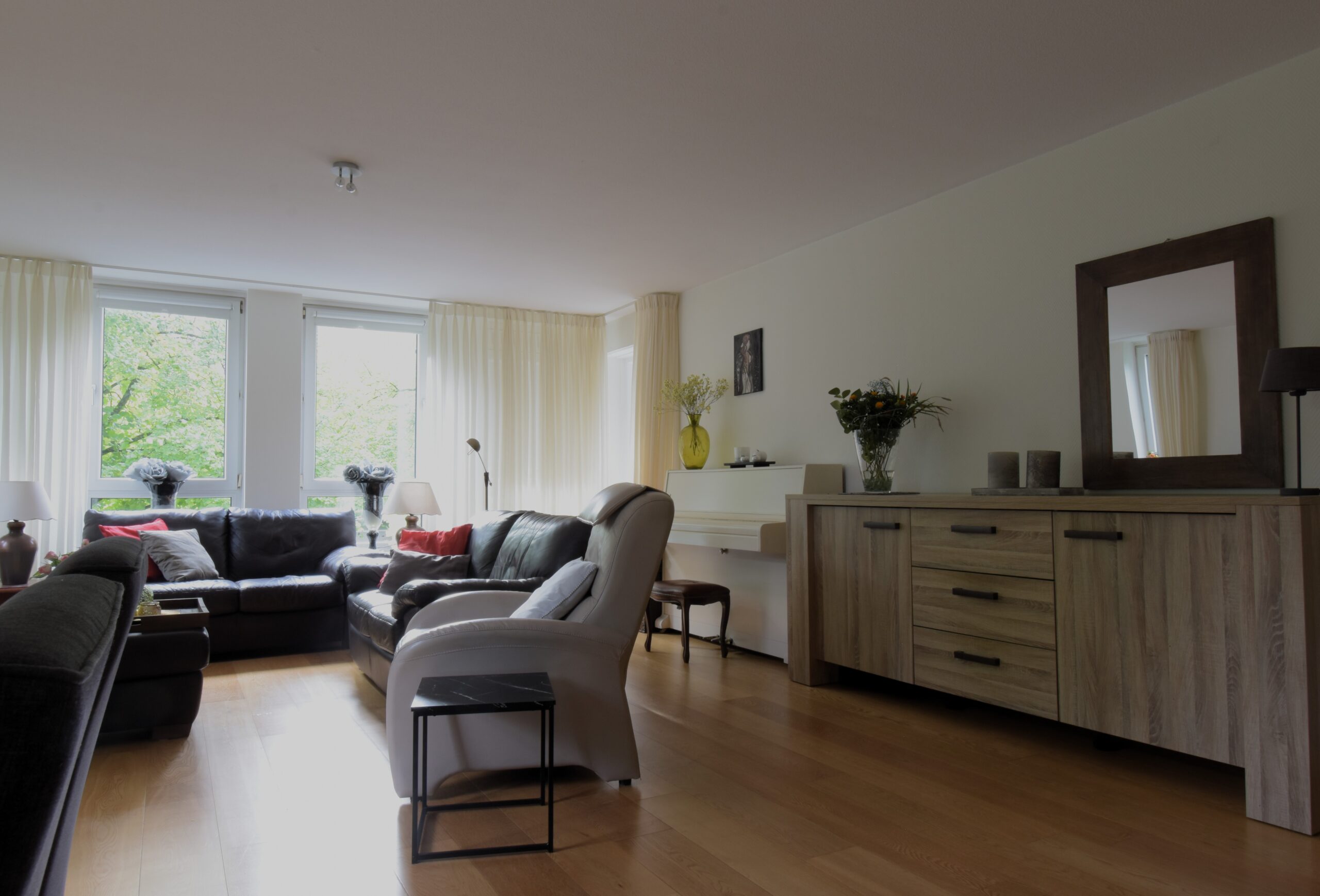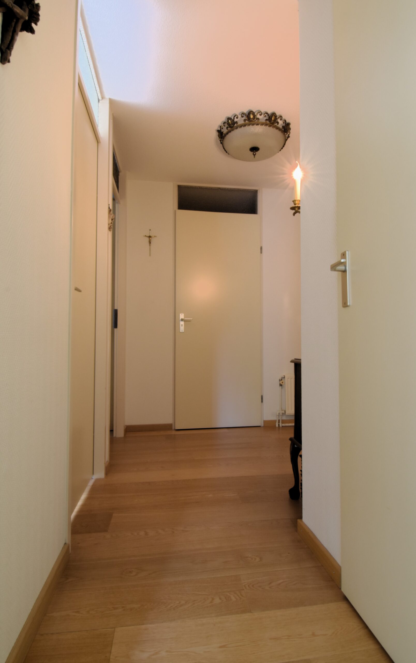 Het hele appartement is v.v. een hoogwaardige laminaatvloer met eiken toplaag.